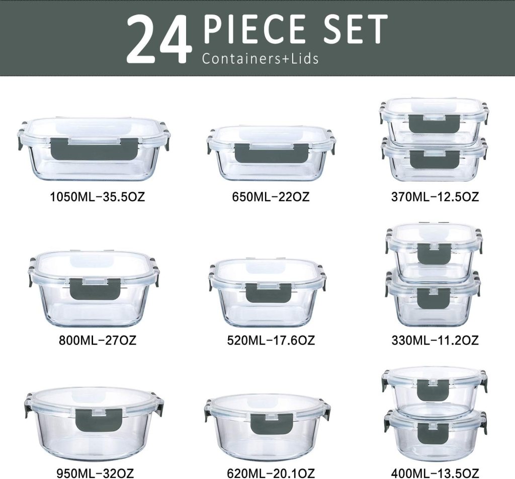2. M MCIRCO 24-Piece Glass Food Storage Containers with Snap Locking Lids